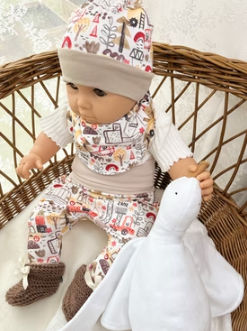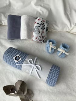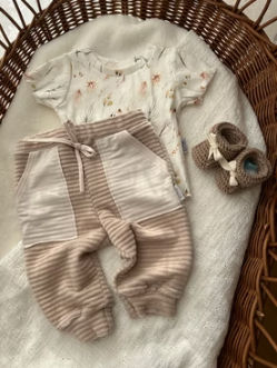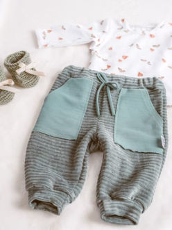 Kolekcija vsebuje osnovne kose oblačil, dodatkov in tekstila za nego otroka. Vsak kos je ročno narejen, nekatere krasijo tudi unikatne vezenine.